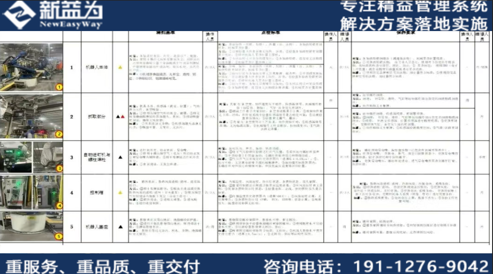 近日,安徽某汽車模具公司攜手新益為咨詢公司,順利完成了“精益TPM設備管理提升項目”第八期現場輔導。本期輔導以“自主運營深化、標準落地固化、團隊能力內化”為主線,通過系統化的點檢、培訓與實戰推演,進一步夯實了企業設備管理基礎,推動了全員參與改善的文化落地,為持續提升生產綜合效率注入了新動能。